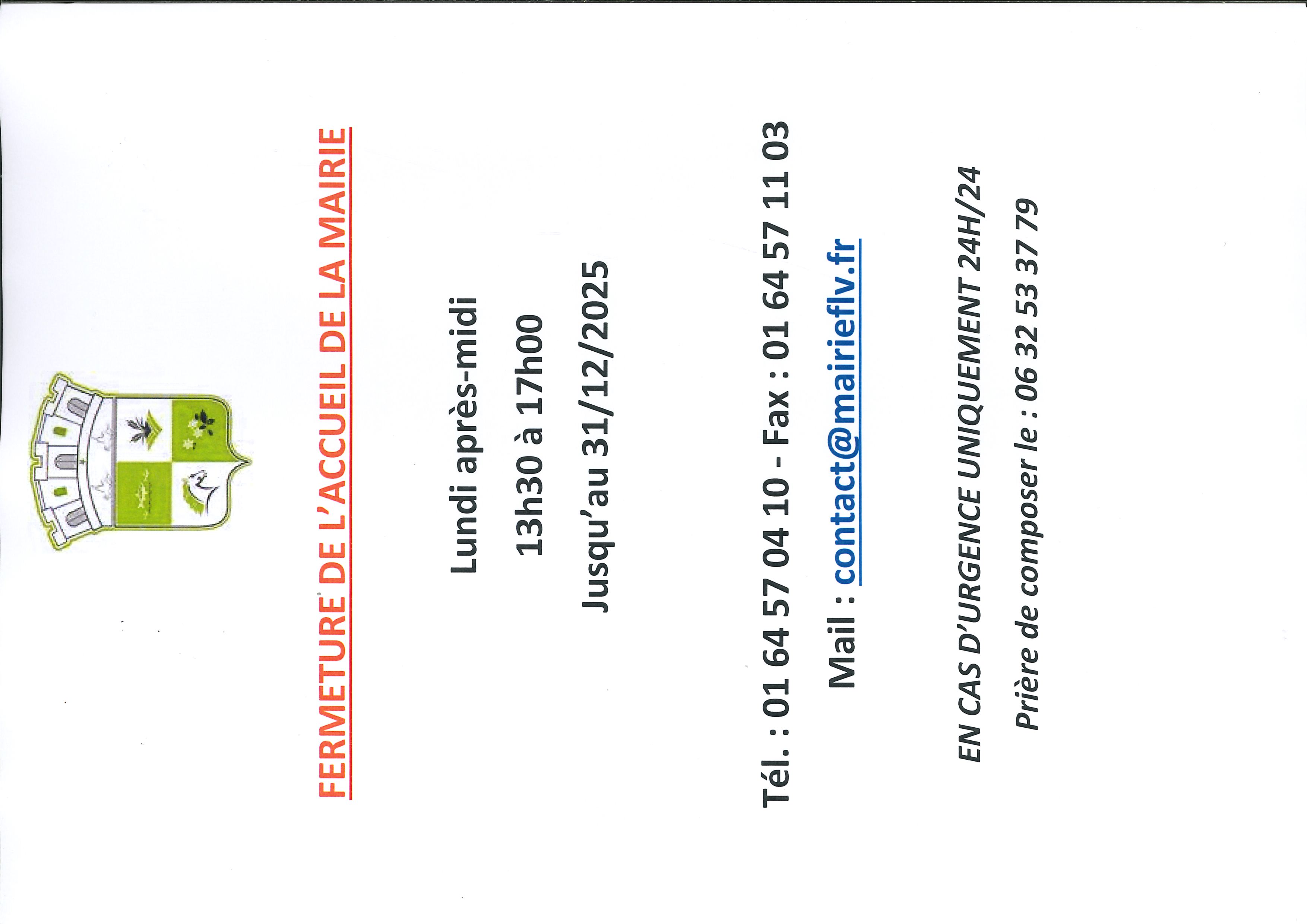 Vous êtes ici : Accueil > FERMETURE DE L' ACCUEIL DE LA MAIRIE
